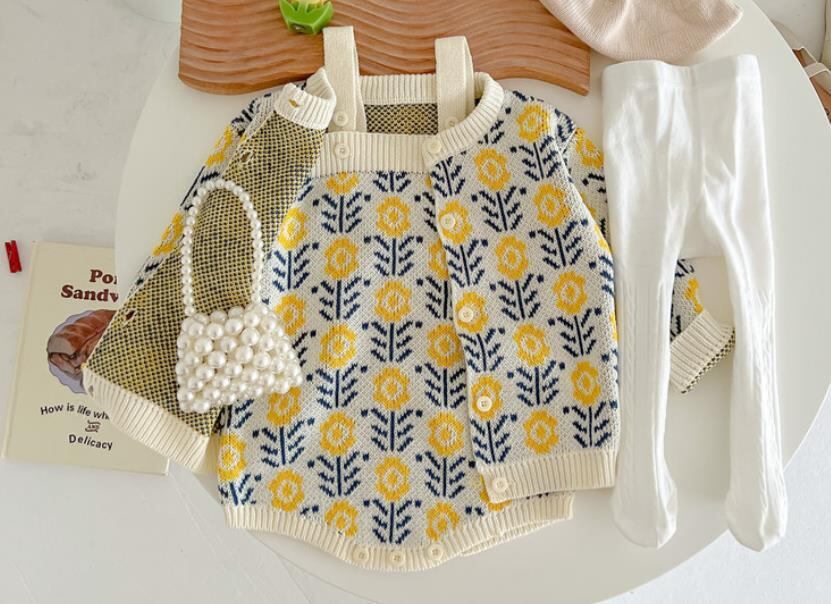 {※分けて販売/カーディガン}秋冬★子供服 ニットサロペット&カーディガン&タイツ 66-90cm