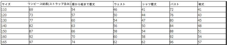 ・130cm: ワンピース総長(ストラップ含み)77cm/腰から裾まで着丈60cm/ウエスト54cm/ シャツの着丈47cm/バスト80cm/裾丈45cm