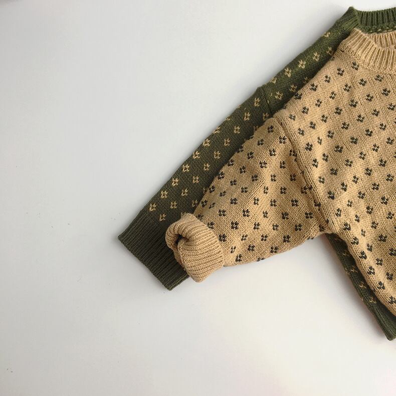 秋新作 レトロ風 子供セーター 花柄 韓国子供服 柔らかい セーター カジュアル トップス ニット 2色