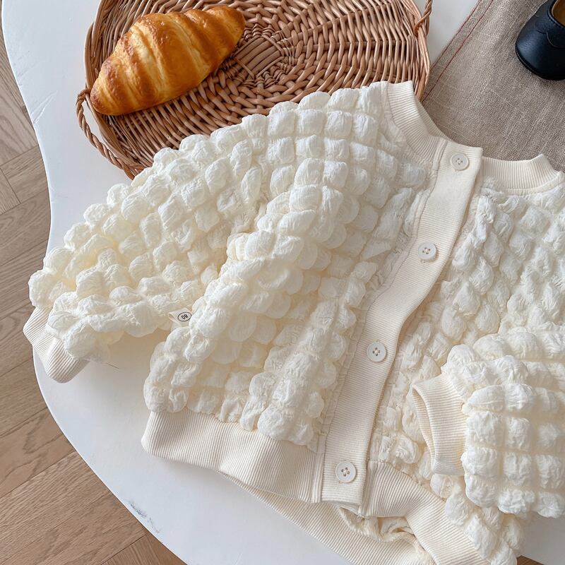 可愛らしい2023秋新作のベビー服のジャケットです。お子さんにおしゃれな普段着を提供します。アウターとしても活躍する一着で、お子さんの可愛らしい姿を引き立てます。3つのカラーバリエーションから選べますので、お子さんの好みやお洋服に合わせてお選びください。サイズは80〜120cmまで展開しておりますので、成長に合わせて長くお使いいただけます。