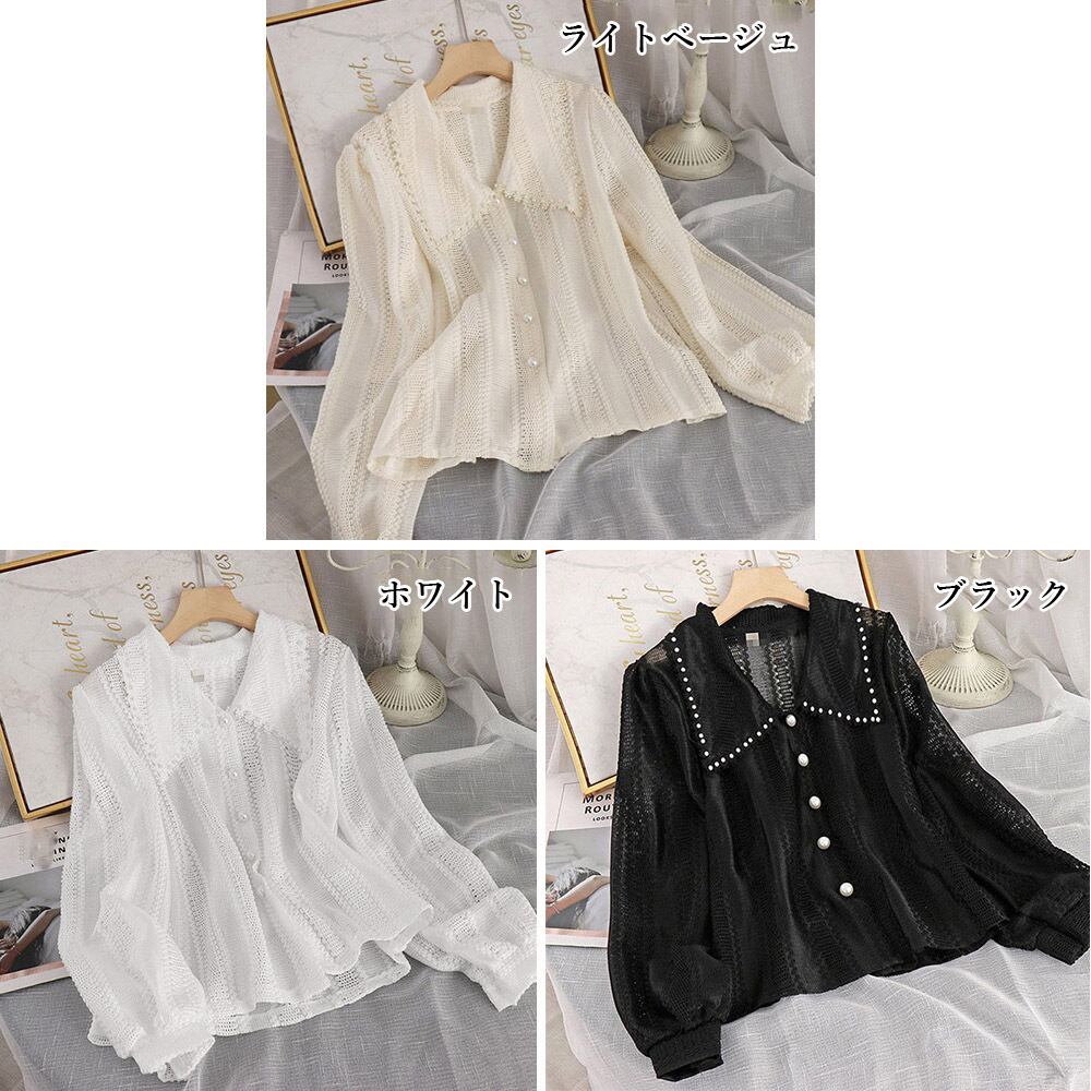 レディース 韓国おしゃれ Vネック デカ襟トップス 長袖シャツ レースブラウス 白黒オフィスカジュアル パフスリーブ春服