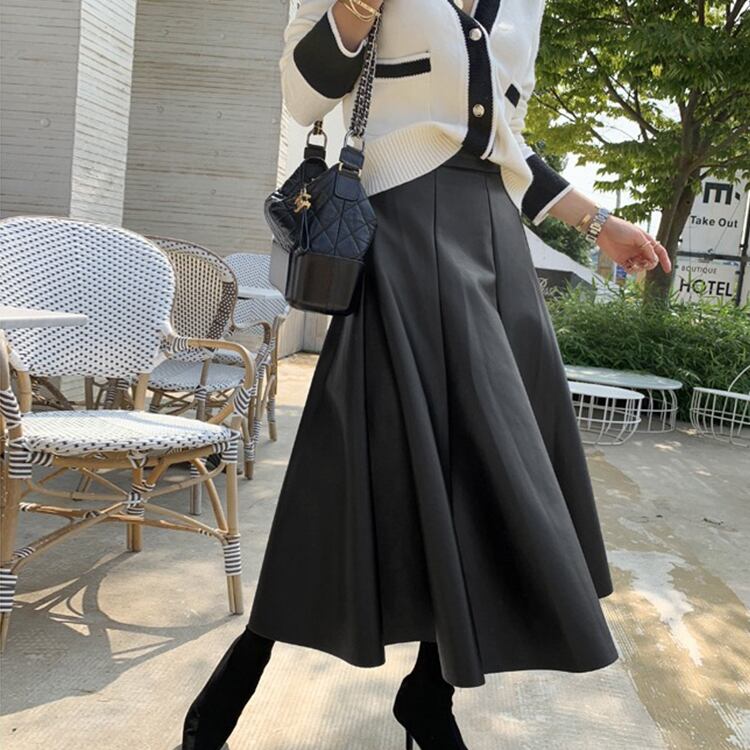 高見えヒダがオシャレなレザーロングスカート 全2色