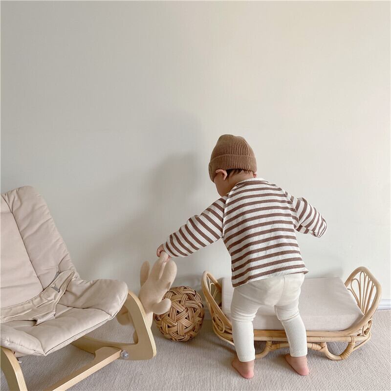 ベーシックなデザインの子供服のトップスです。カジュアルで可愛いデザインで、子供の成長に合わせて長くご愛用いただけます。