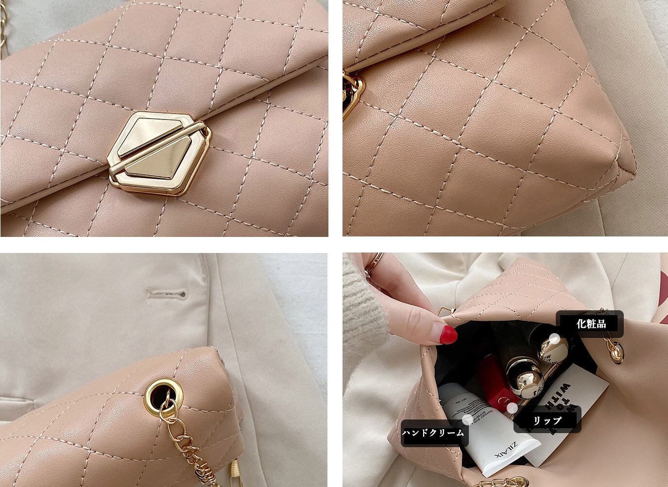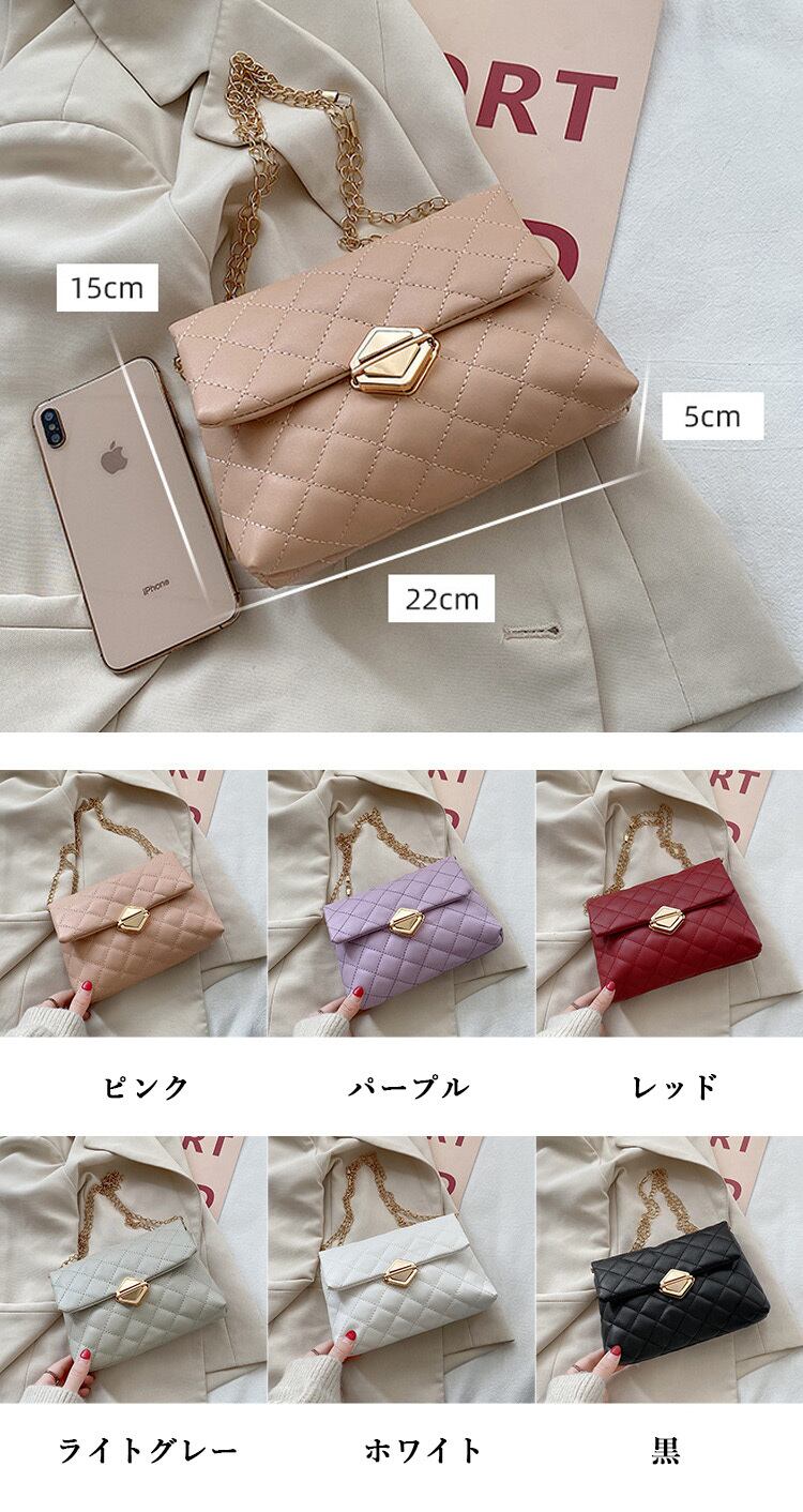 レディース スクエア キルティング チェーン ショルダーバッグ 斜め掛け きれいめ 肩掛け 6色